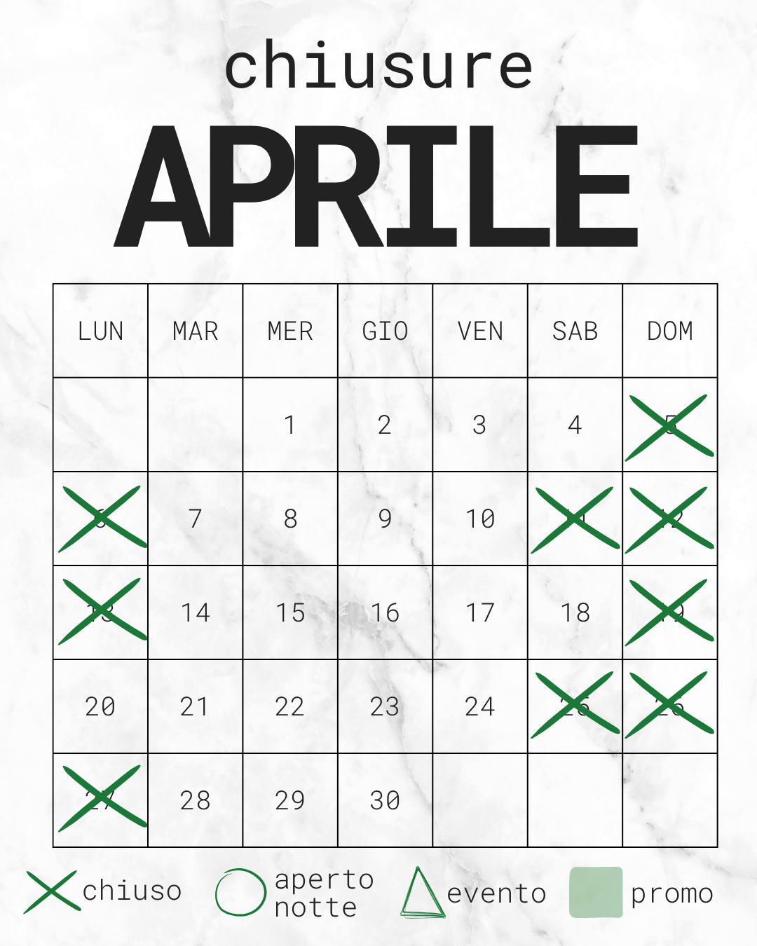 Calendario chiusure, turni notturni ed eventi